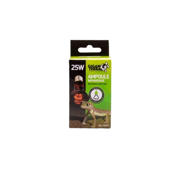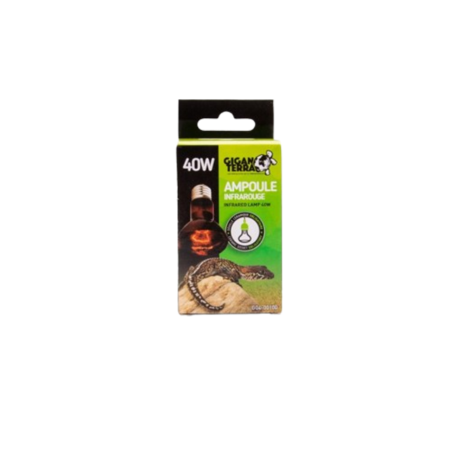 La Infrared Lamp GiganTerra offre une chaleur douce et constante, parfaitement adaptée aux reptiles nocturnes, petits oiseaux ou mammifères sensibles au froid. Son émission lumineuse très faible, filtrée en UVA, permet une utilisation 24 h/24 sans perturber le cycle naturel jour/nuit. Compatible avec une douille E27 en céramique, elle est idéale pour les terrariums peu profonds ou les habitats de taille réduite. Pour garantir la sécurité de l’animal, elle doit être placée hors de portée et protégée par une grille ou un dôme sécurisé.